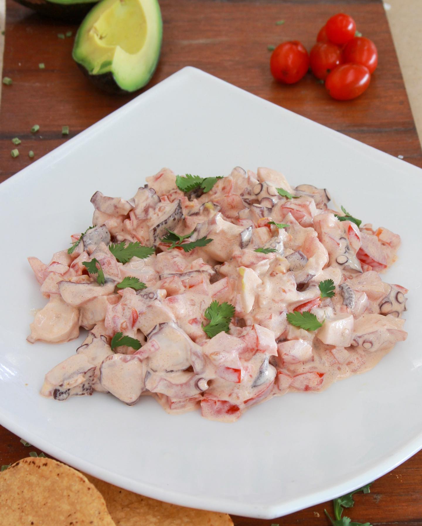 pulpo en salsa de la casa a base de mayonesa y jitomate