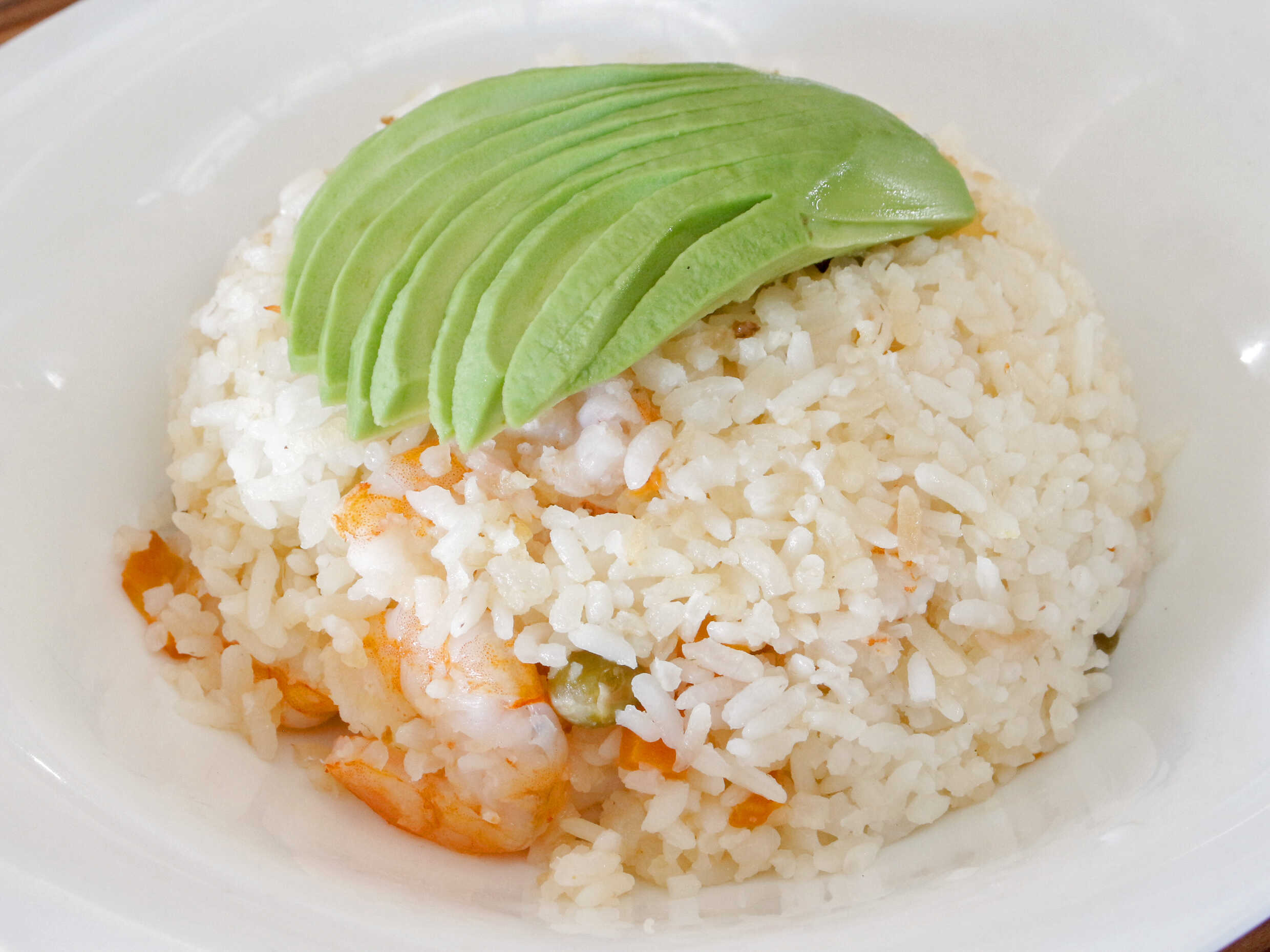 Arroz salteado con mantequilla con camarón o pulpo.