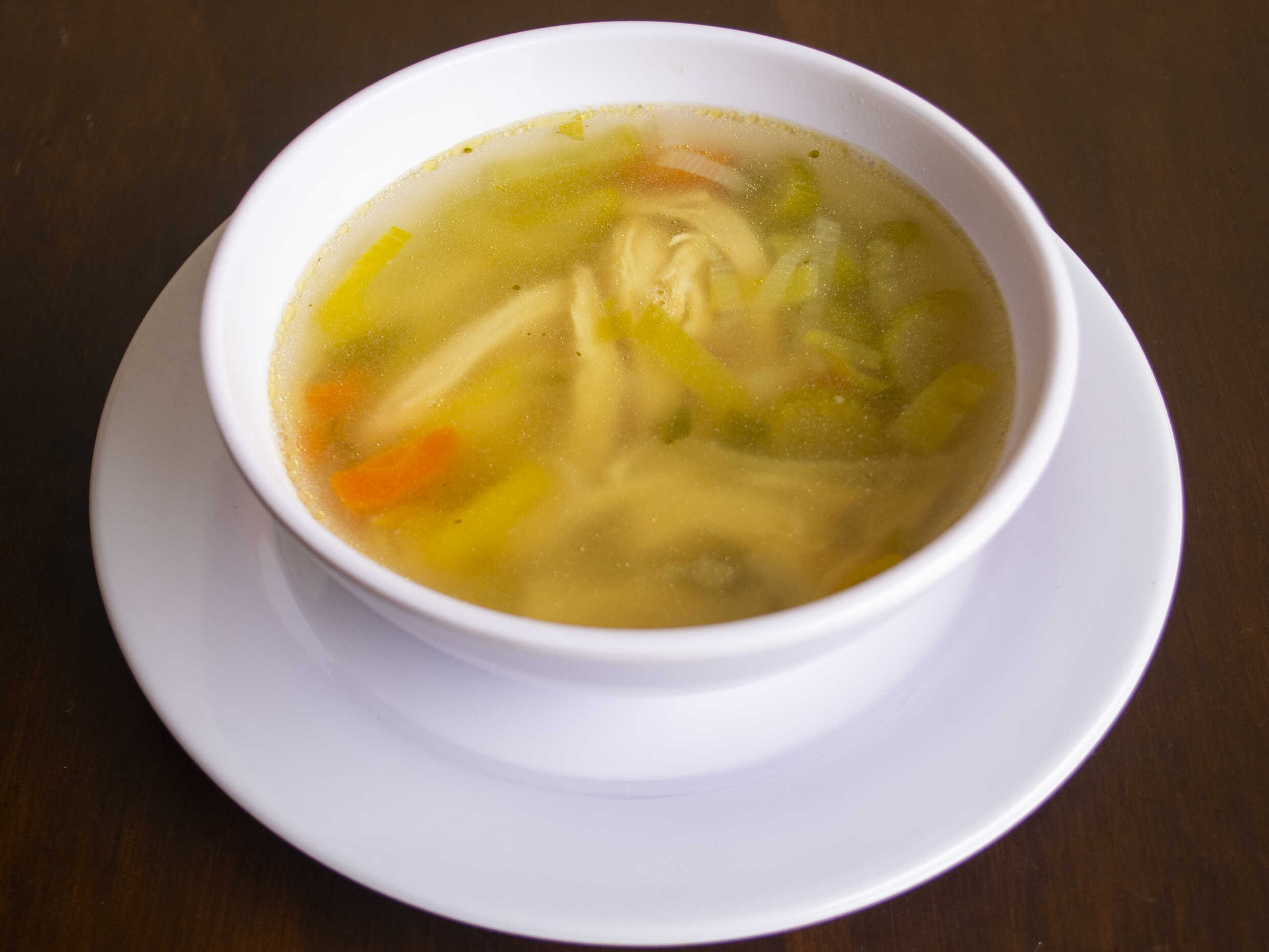 Consomé de pollo con pieza de pollo