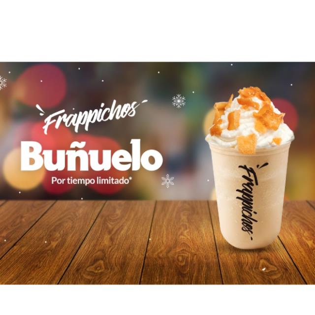 DELICIOSO FRAPPE DE BUÑUELO CON TROCITOS DENTRO Y ARRIBA DE LA CREMA BATIDA