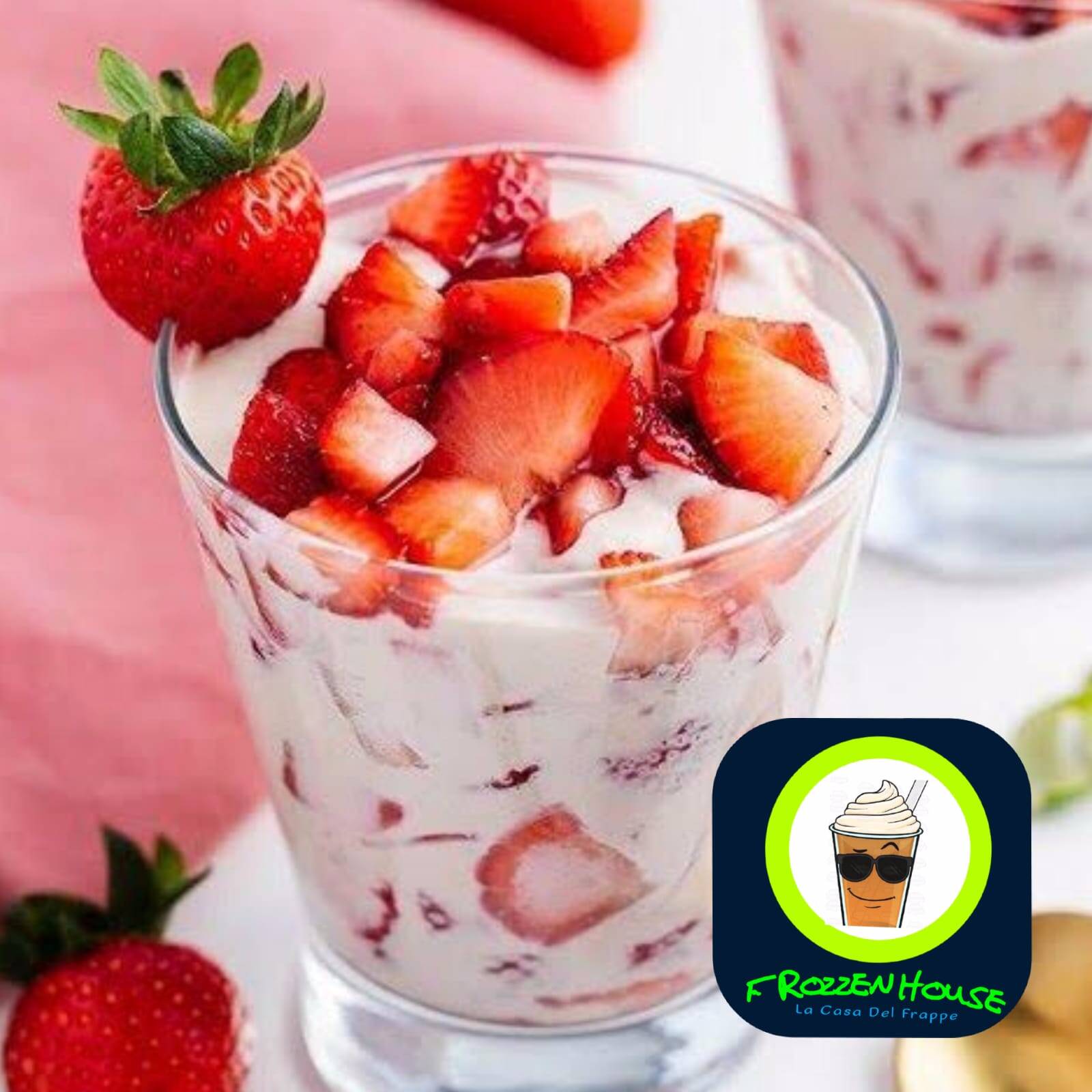 Vaso 14 Oz Delicioso Postre de Fresas Bañadas de Crema Dulce de Leche Batida.