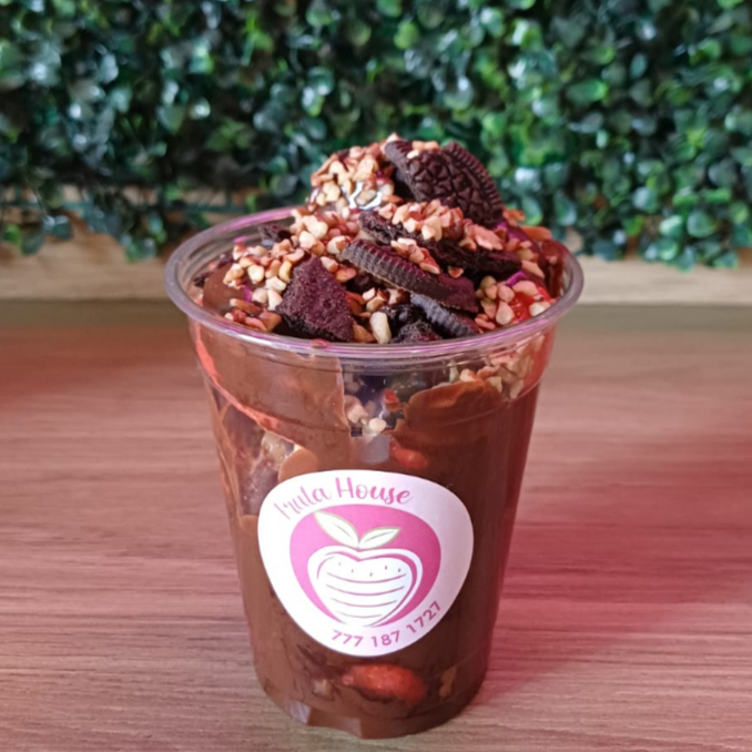 Vaso con 1 fruta, 1 sabor, 1 postre, 1 topping