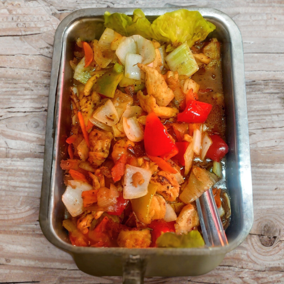Arroz o pasta mas 3 guisados a tu elección, con salsas.