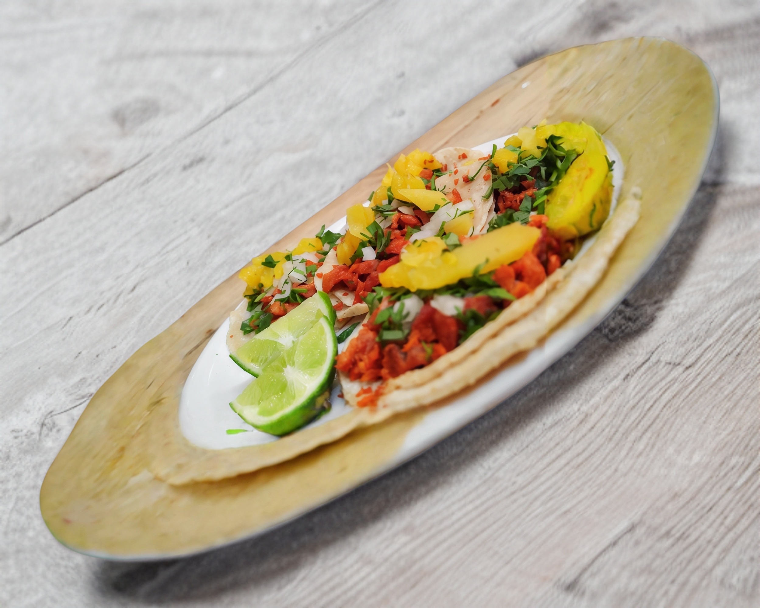 Carne al Pastor, piña, cilantro, cebolla.
