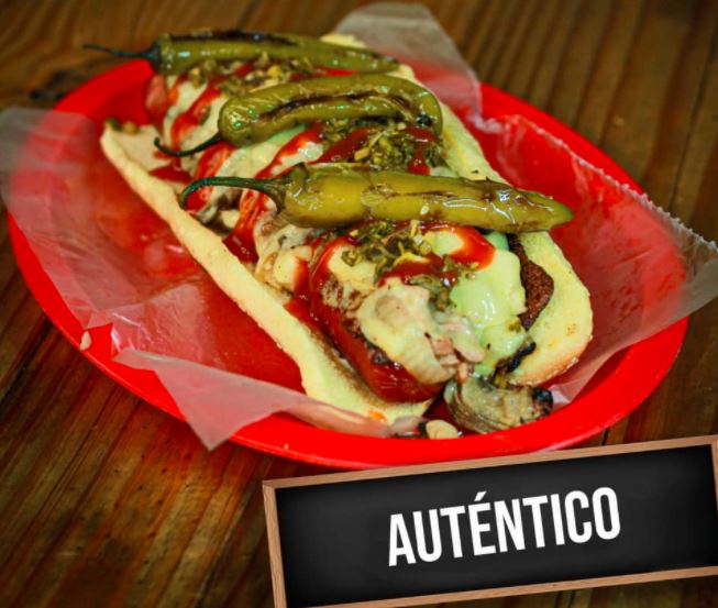 Salchicha de res, tocino, pimiento morrón, cebolla, chuleta, queso gratinado.