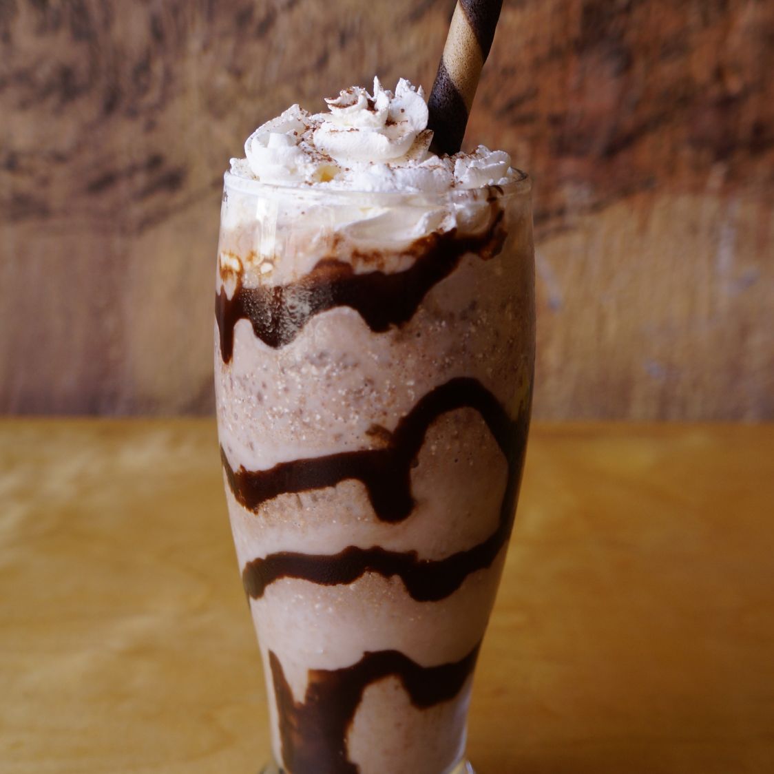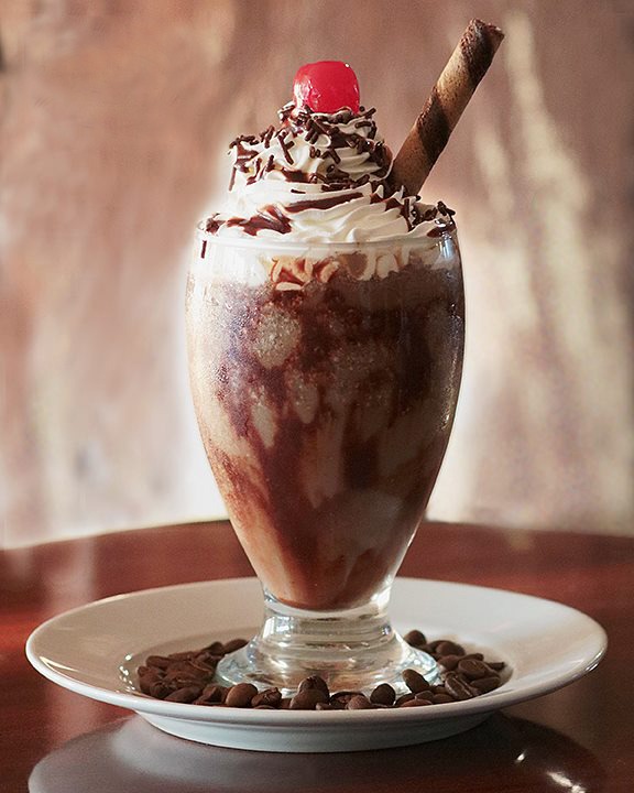 Bebida fría a base de café espresso, leche, chocolate y hielo frappeado. Acompañado de crema batida, granillo y chocolate liquido. 16 oz.
