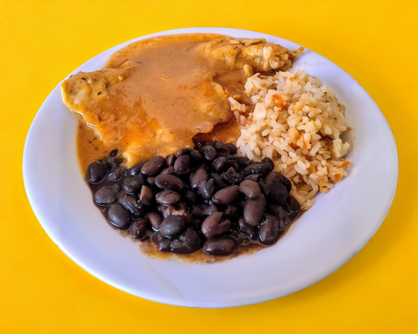 Con arroz, frijoles y 3 tortillas hechas a mano