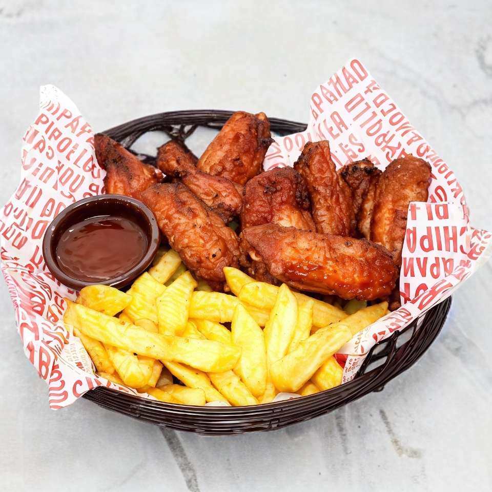 ALITAS ESTILO KFC CON PAPAS BBQ .BUFALO. ABANERO