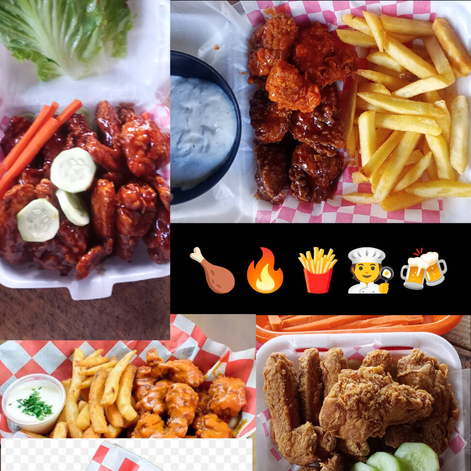 10 bonelles con papas ala francesa BBQ búfalo mango habanero parmesano o chipotle