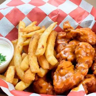 Boneless con papas ala francesa BBQ búfalo