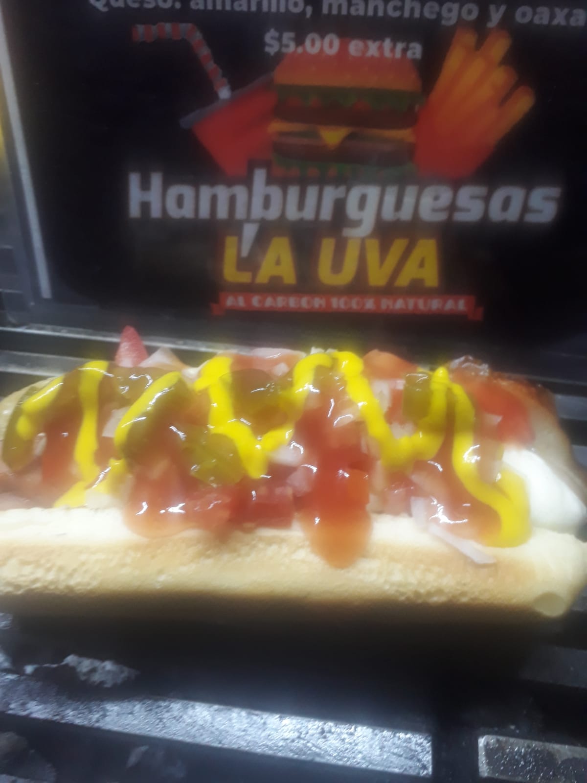 Hamburguesa, hot-dog sencillo y refresco.