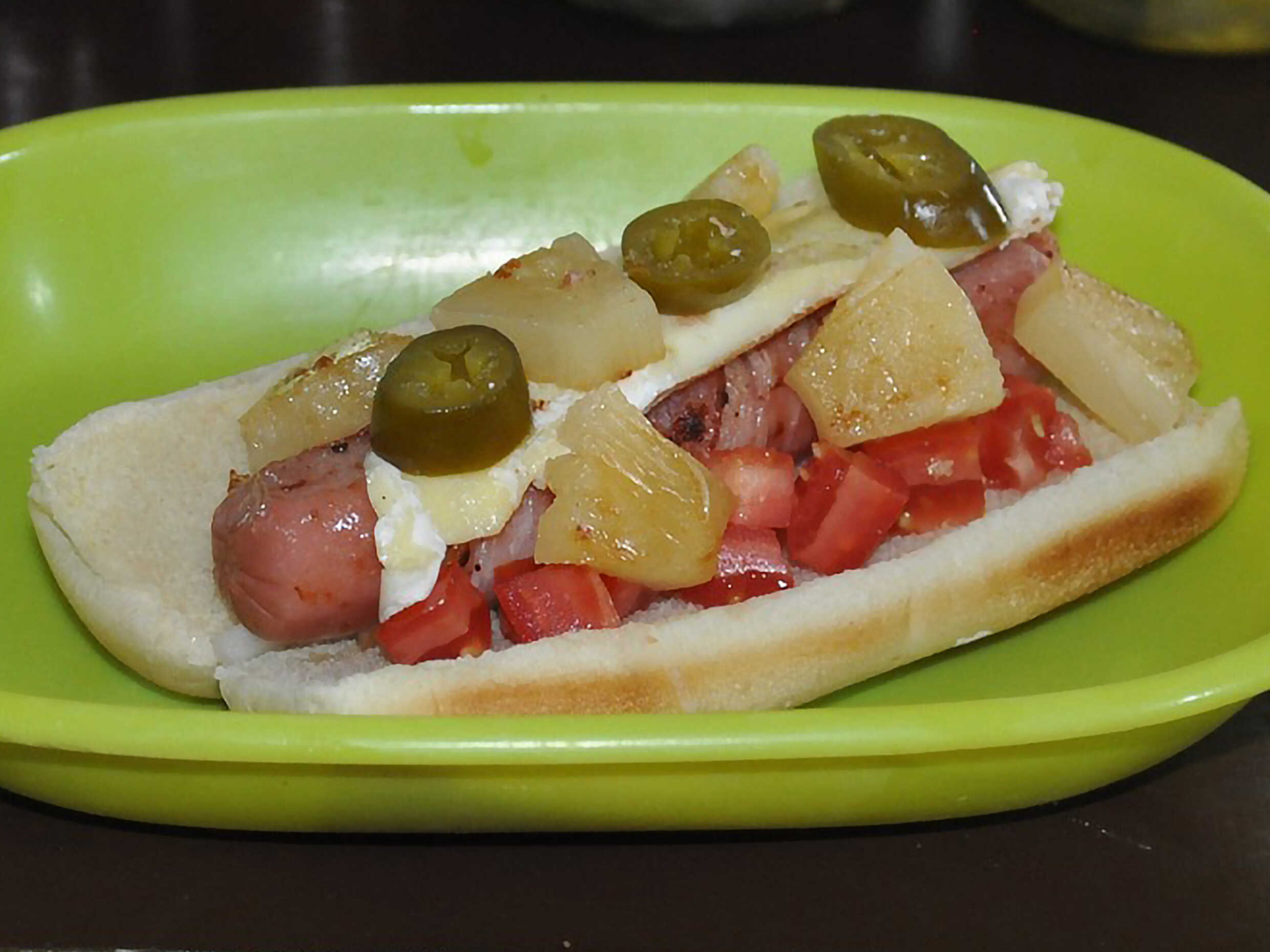 Hot Dog con Tocino y Piña