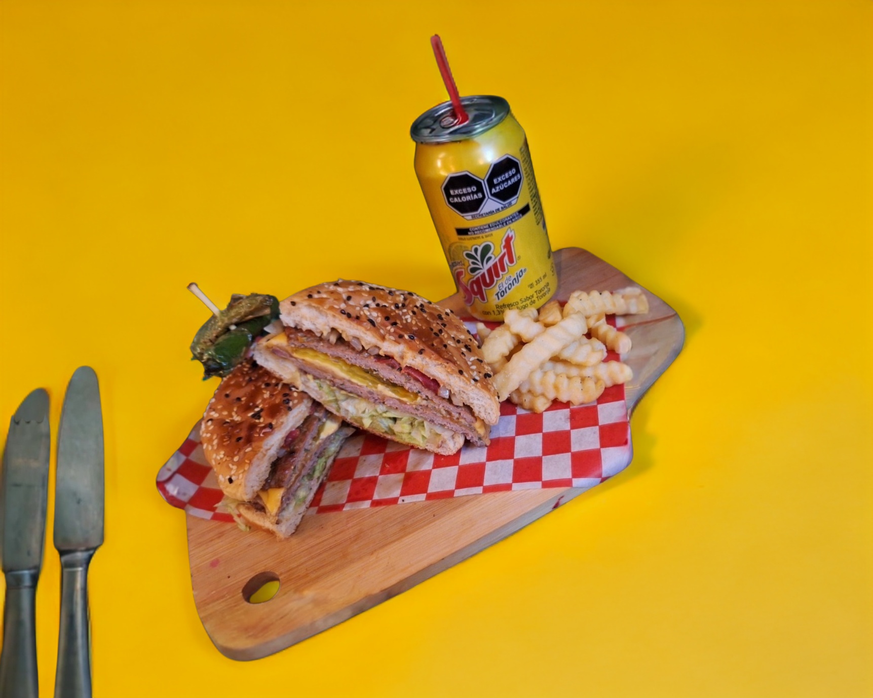 Hamburguesa con doble carne, incluye papas a la francesa 200 g.