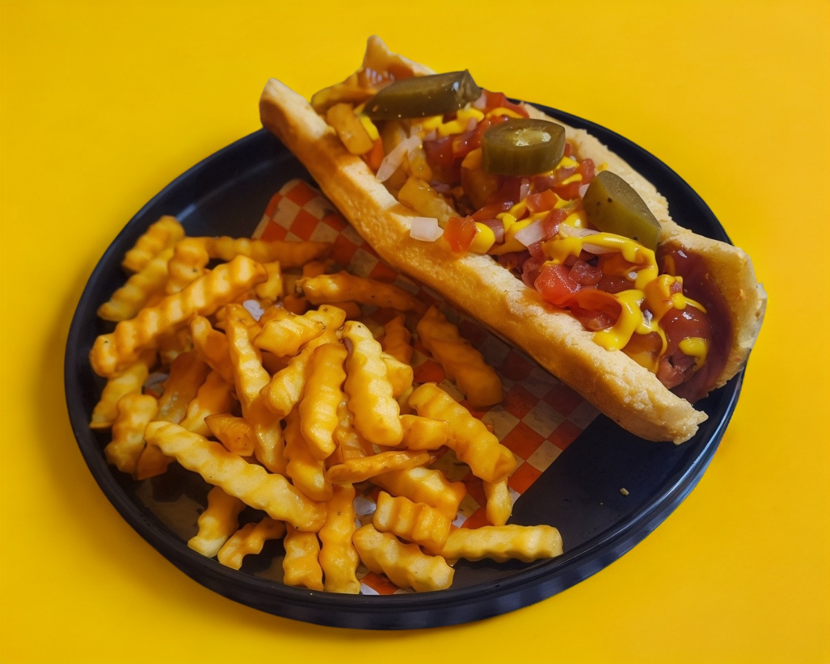 Incluye salchicha, mayonesa, catsup, mostaza, jitomate y cebolla.