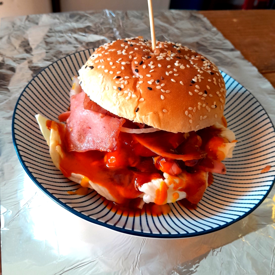 Hamburguesa con salsa BBQ