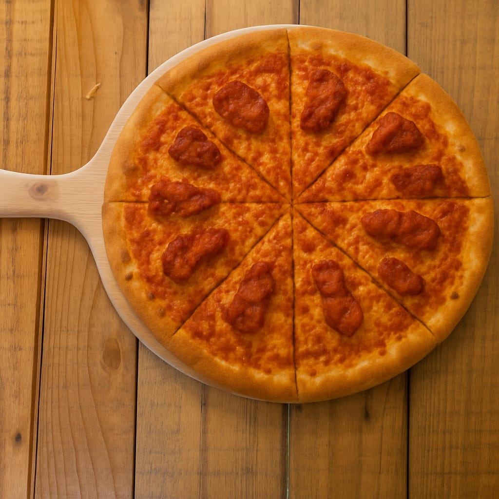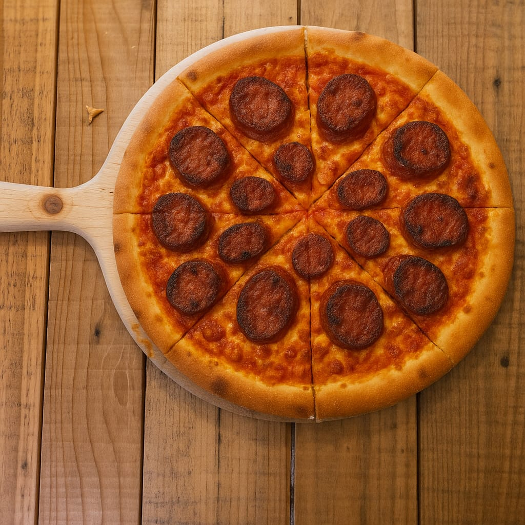 Salsa de tomate, queso mozarella y chorizo argentino.