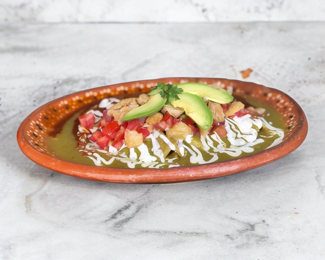 En salsa verde ó roja ó suiza, con pollo ól longaniza ó buevito con crema, queso y cebollita (En notas añade la salsa o proteina de tu elección)