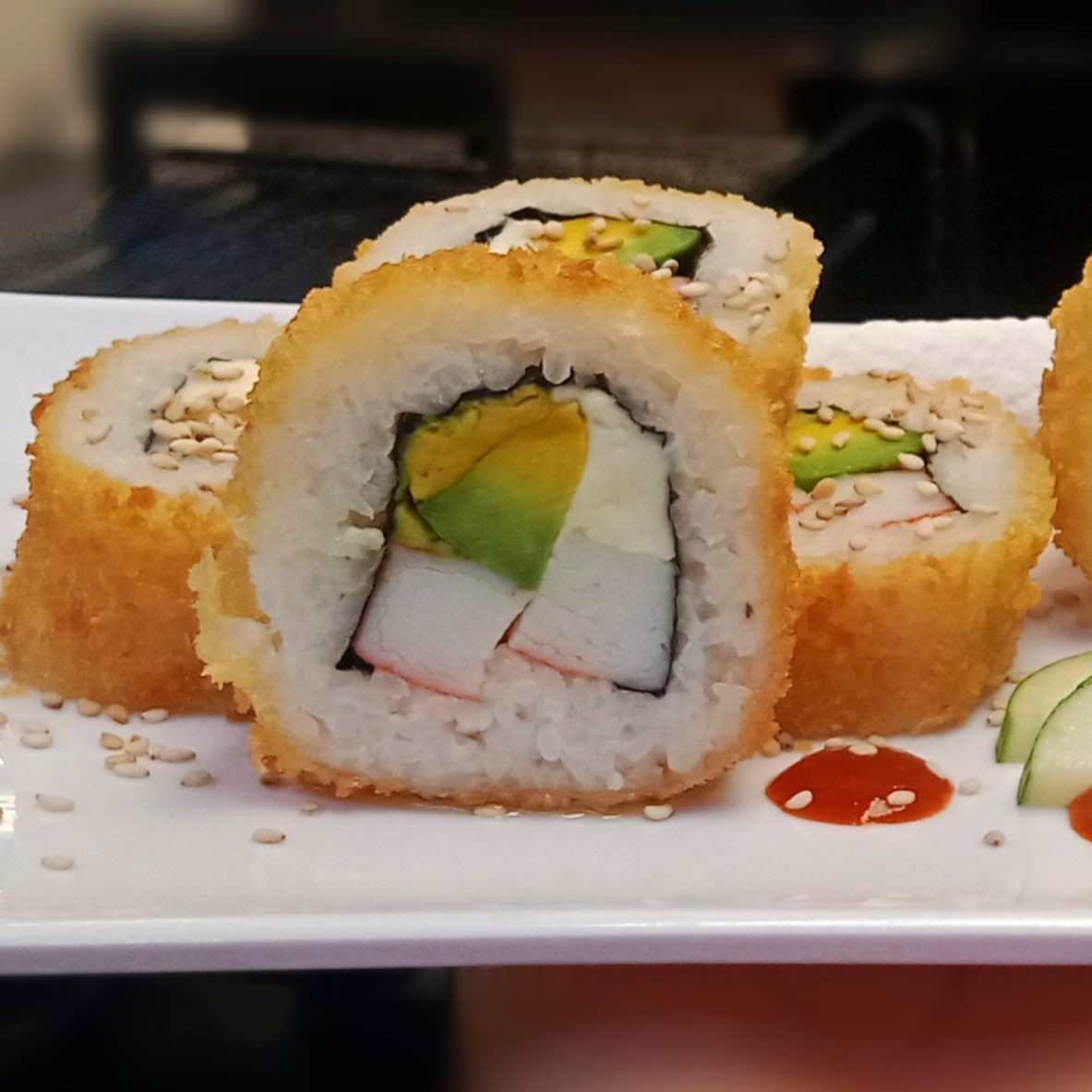 El clásico de la casa. Surimi, queso crema y aguacate. Empanizado.
