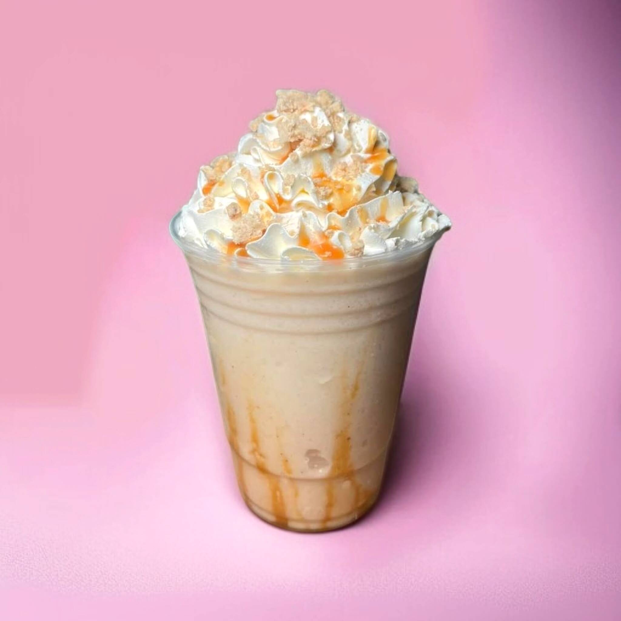 Frappe grande de 16 Oz, delicioso Frappe de mazapán. Este refrescante bebida combina la suavidad del mazapán con la cremosidad del hielo y la leche, creando un sabor único.