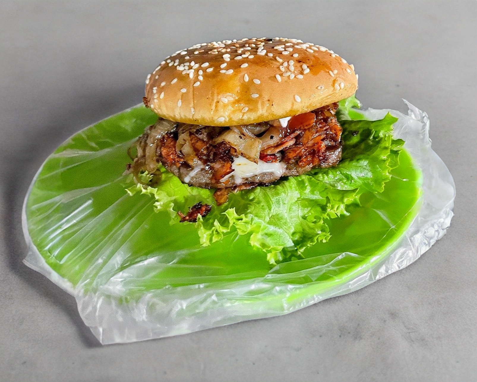 Una explosión de sabor norteño: carne jugosa con chorizo, cebolla caramelizada, tocino crujiente, queso Monterrey Jack, lechuga italiana, jitomate y pan suave. ¡Sazón intenso que te hará decir wow desde la primera mordida!