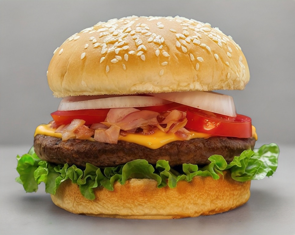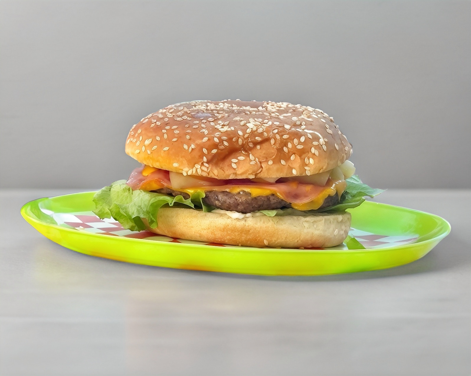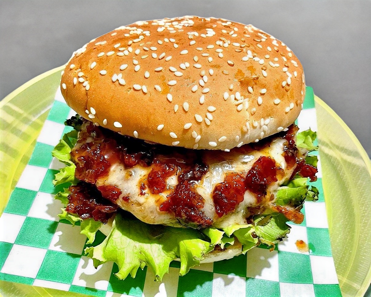 Un Clasico de las hamburguesas: Carne jugosa con queso amarillo y tocino, lechuga italiana, jitomate, cebolla y pan suave. ¡Un clásico que te encantara!