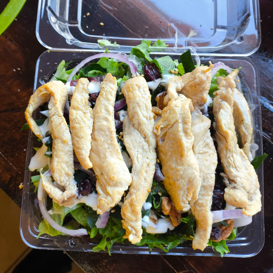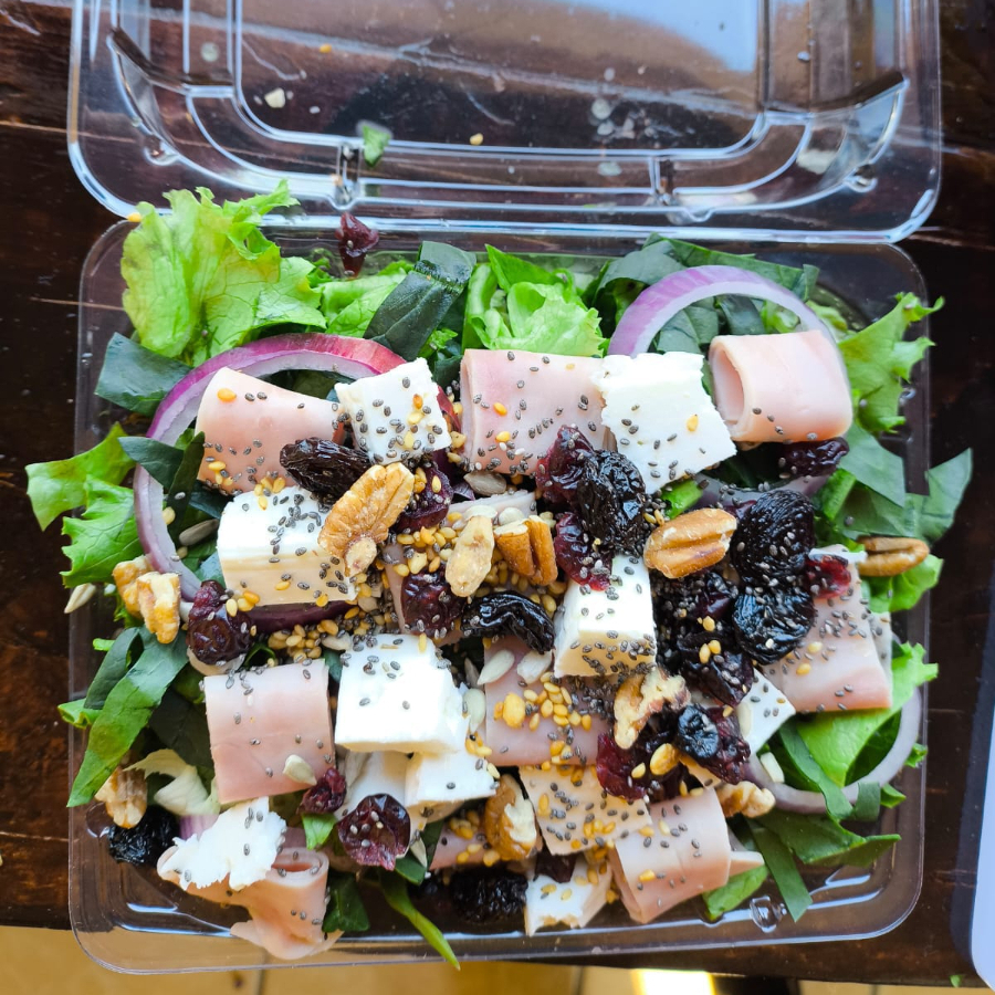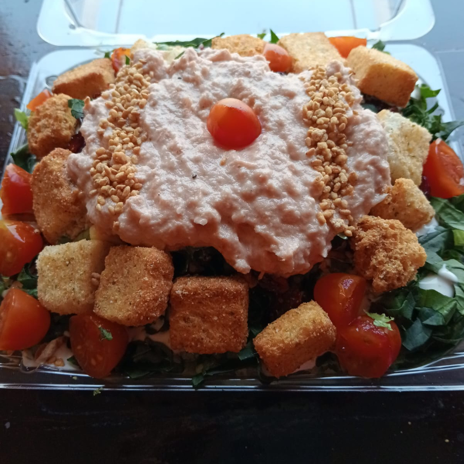 Ensalada mixta con proteína al gusto y aderezo.
