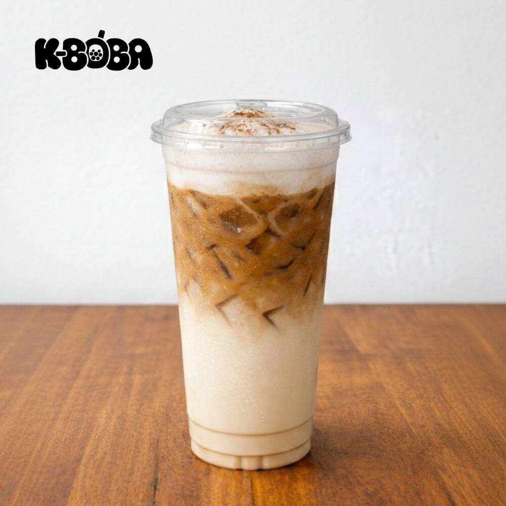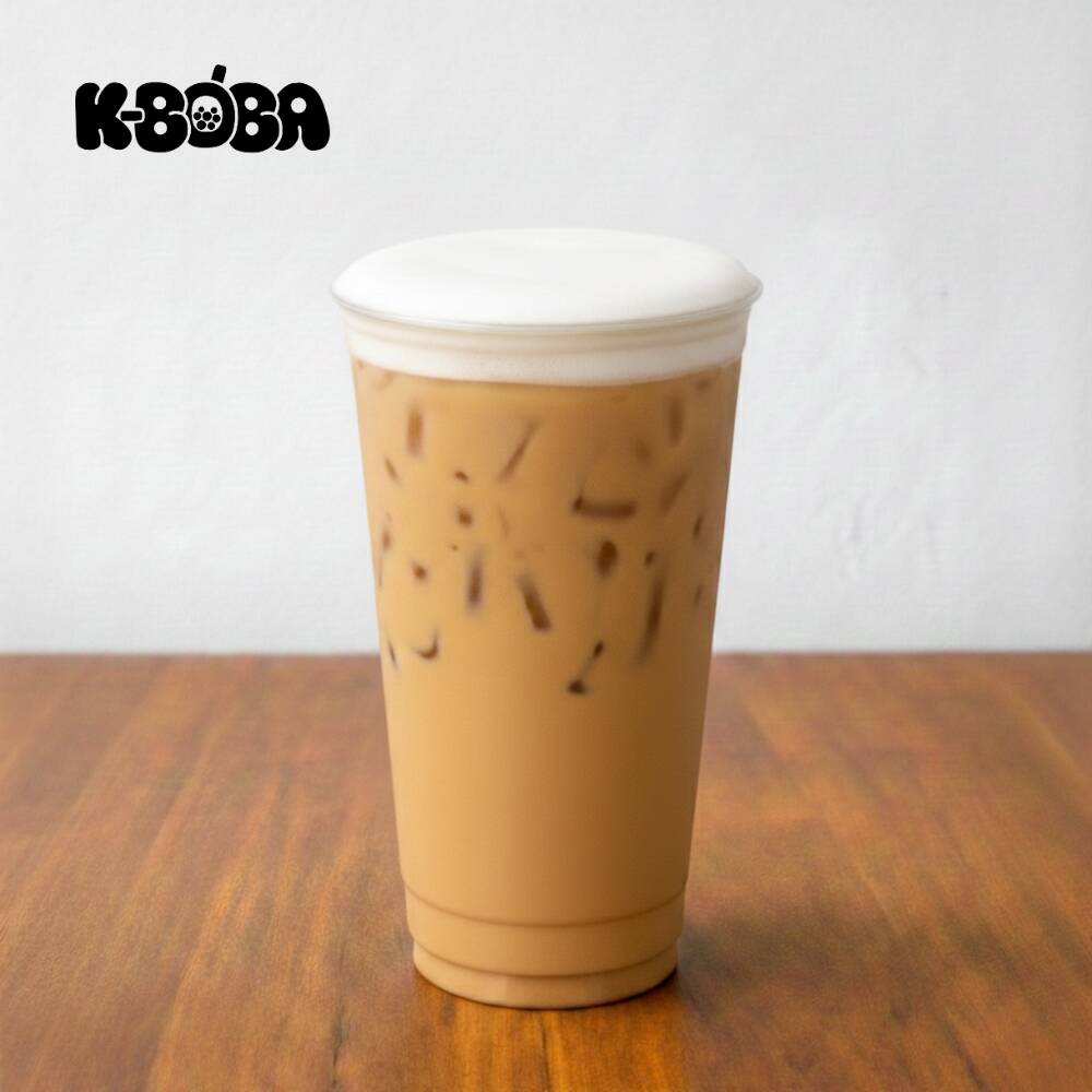 Bebida fría de 24 oz. servida sobre hielo, elaborada a base de leche y polvo de chai.