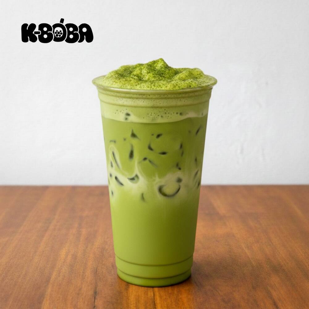 Bebida fría de 24 oz. servida sobre hielo, elaborada a base de leche y polvo de matcha.