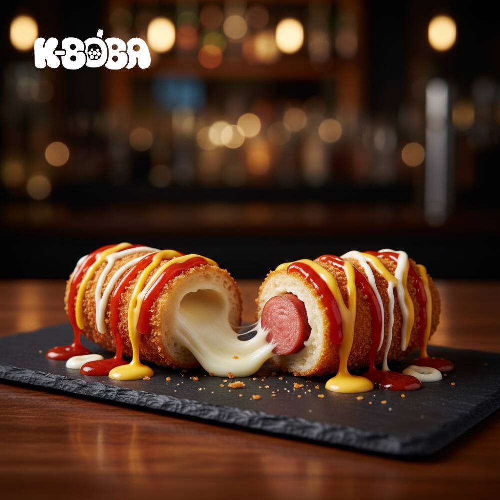Alimento de origen coreano, similar a un corn dog, elaborado con queso mozarella y salchicha de pavo cubiertos por una masa a base de harina, empanizada y frita hasta obtener una textura crujiente por fuera y suave por dentro.