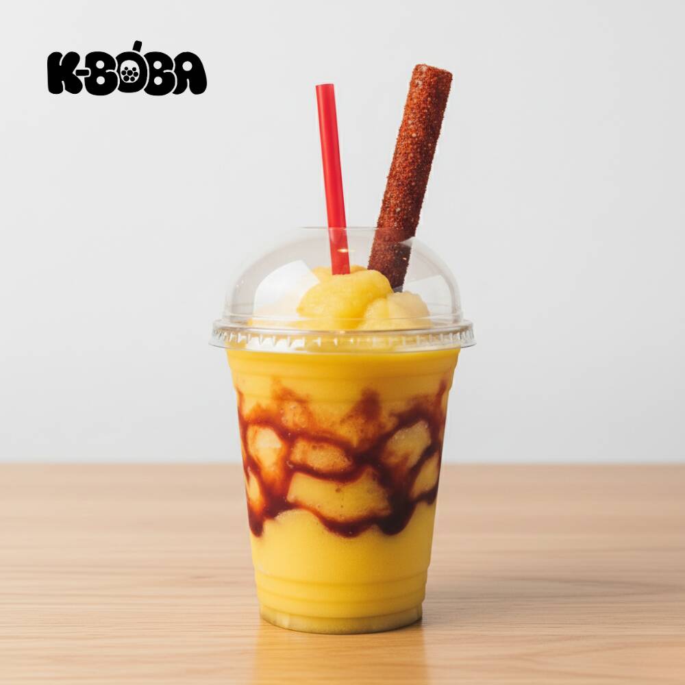 Bebida fría de 16 oz. elaborada a base de hielo triturado, pulpa de fruta y salsa chamoy, licuada hasta obtener una consistencia espesa y homogénea.