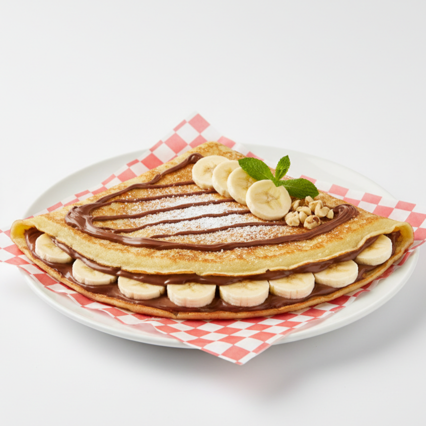 Crepa preparada con masa de la casa, acompañada de crema de avellana