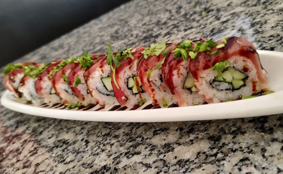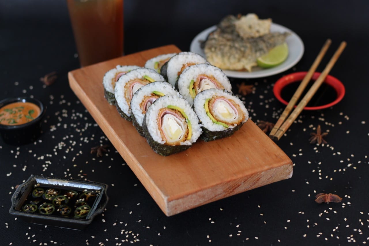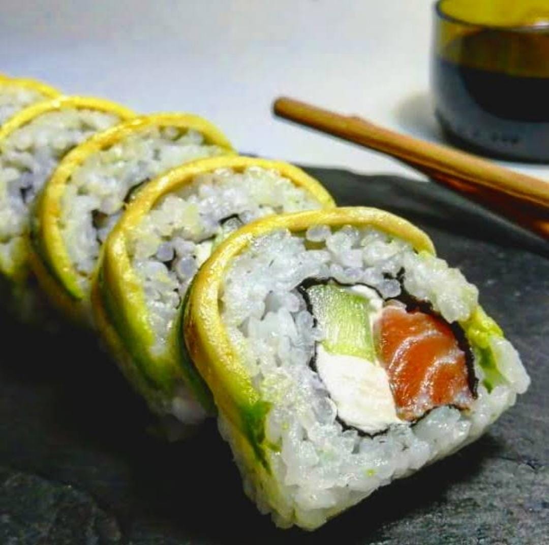 Queso crema y pepino por dentro. Aguacate, mango y proteína a elegir por fuera.