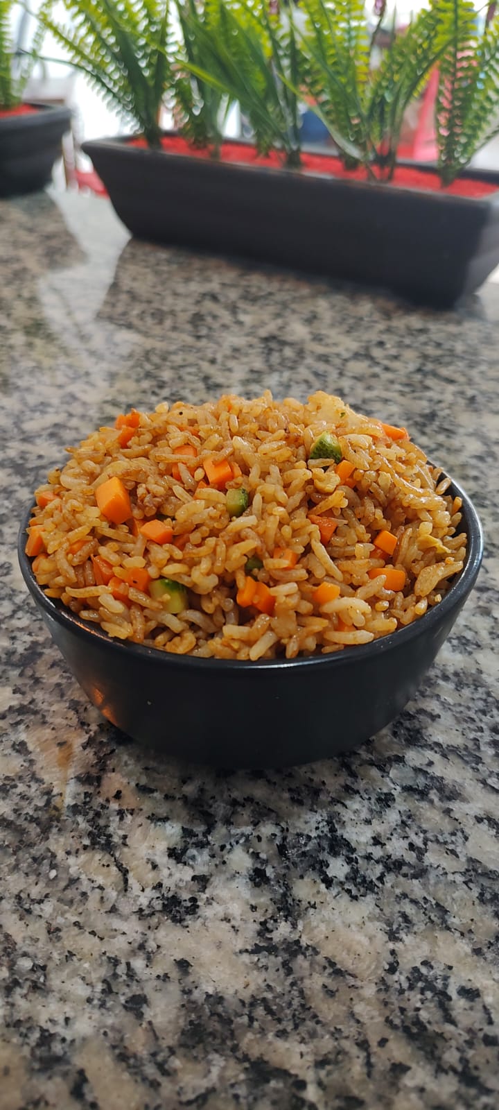 Arroz frito con verduras, aderezo de chipotle, aguacate, queso crema, ajonjolí, anguila y proteína a elegir