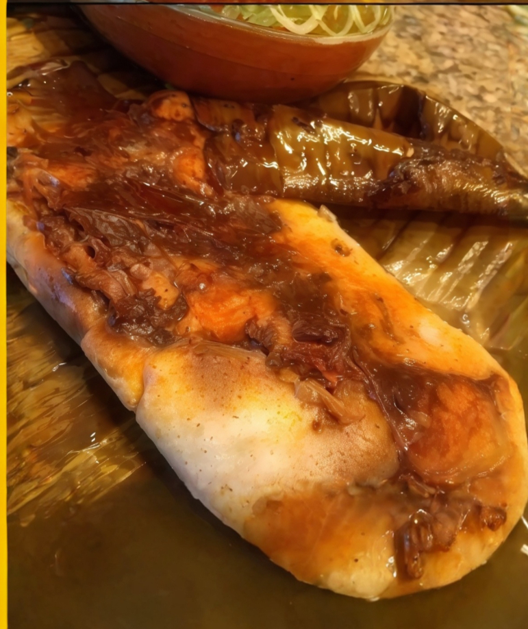 Tamal de pollo en hoja de plátano + Sabor a elegir.