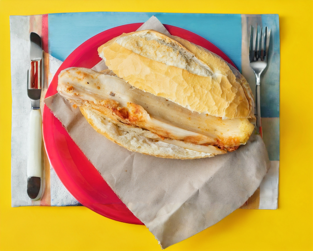 Torta de queso de puerco con queso blanco, mayonesa, lechuga y jitomate.