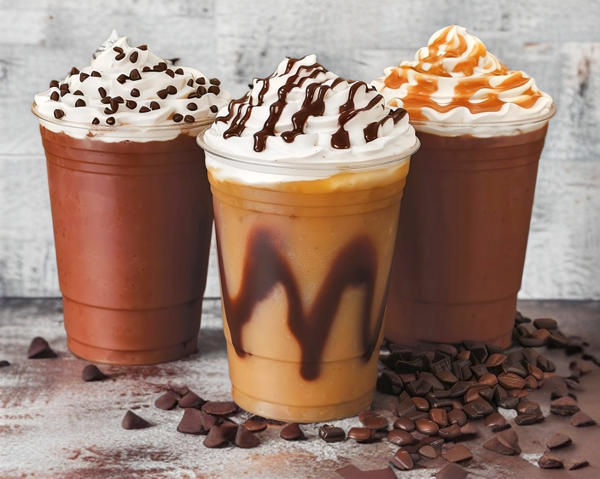 1 Bebida de hielo preparado con sabor a elegir y decorado con crema batida chocolate líquido y granillo de chocolate.