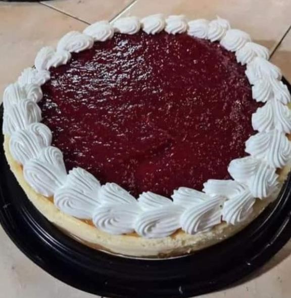 Pastel de 1 kilo relleno de fruta en tres leches y domo decorado.