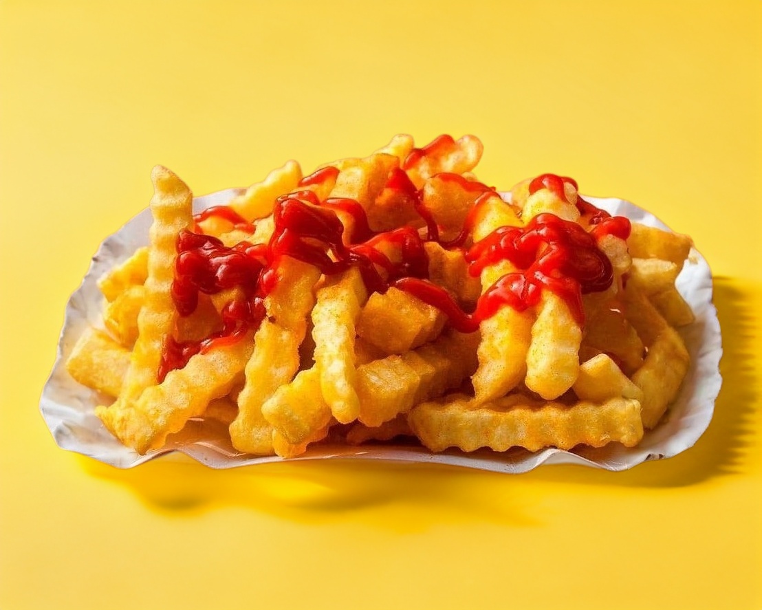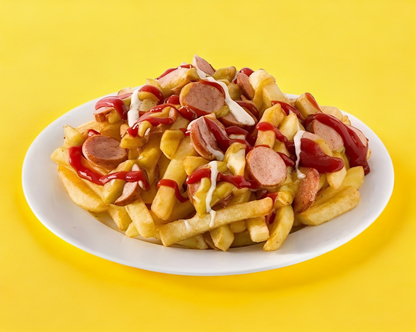 Mezcla de papas fritas con salchipulpos , queso, cátsup y salsa.