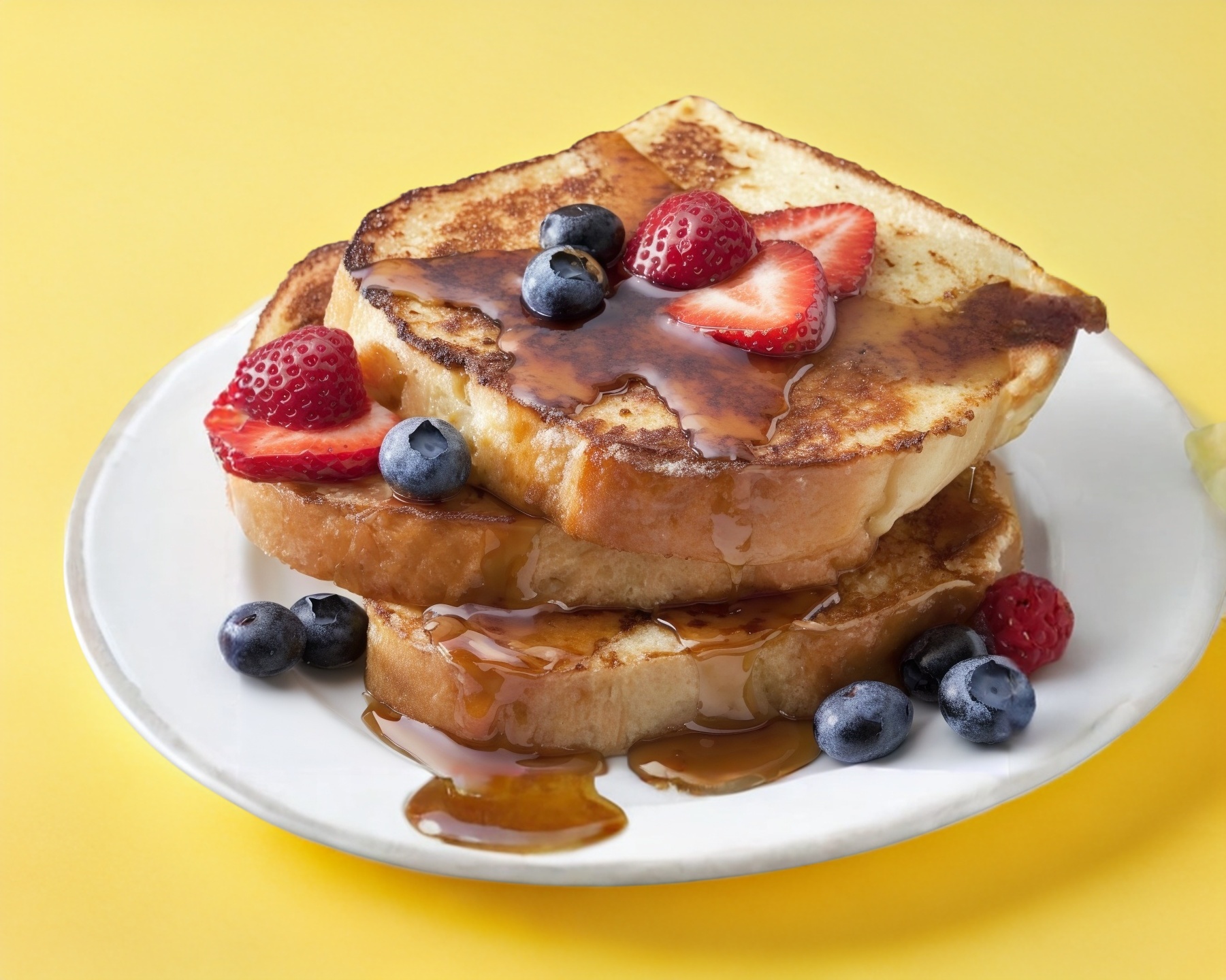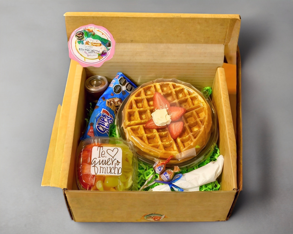 Acompañado de fresa, miel maple y un toque de azúcar glass.