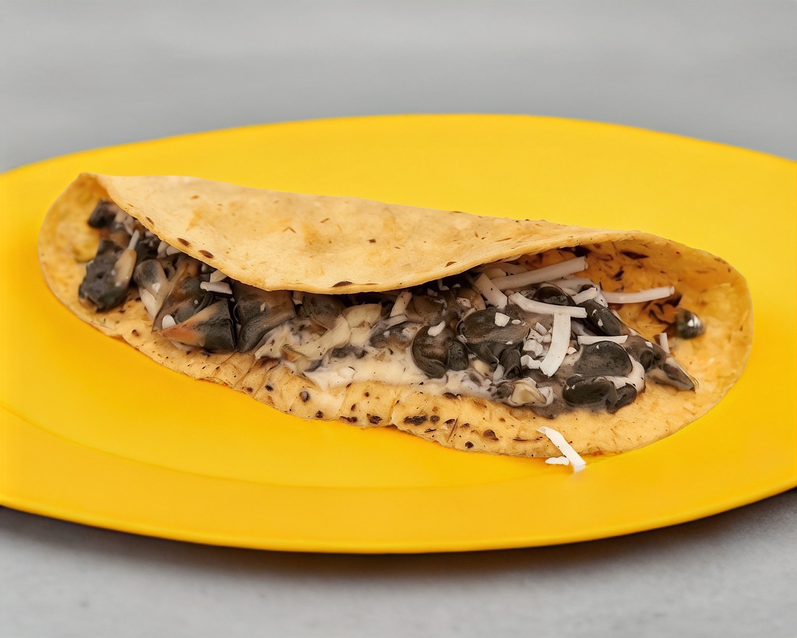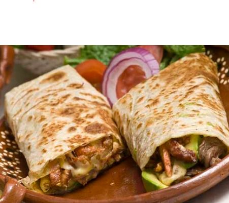 Quesadilla preparada con crema, queso, lechuga y salsa.