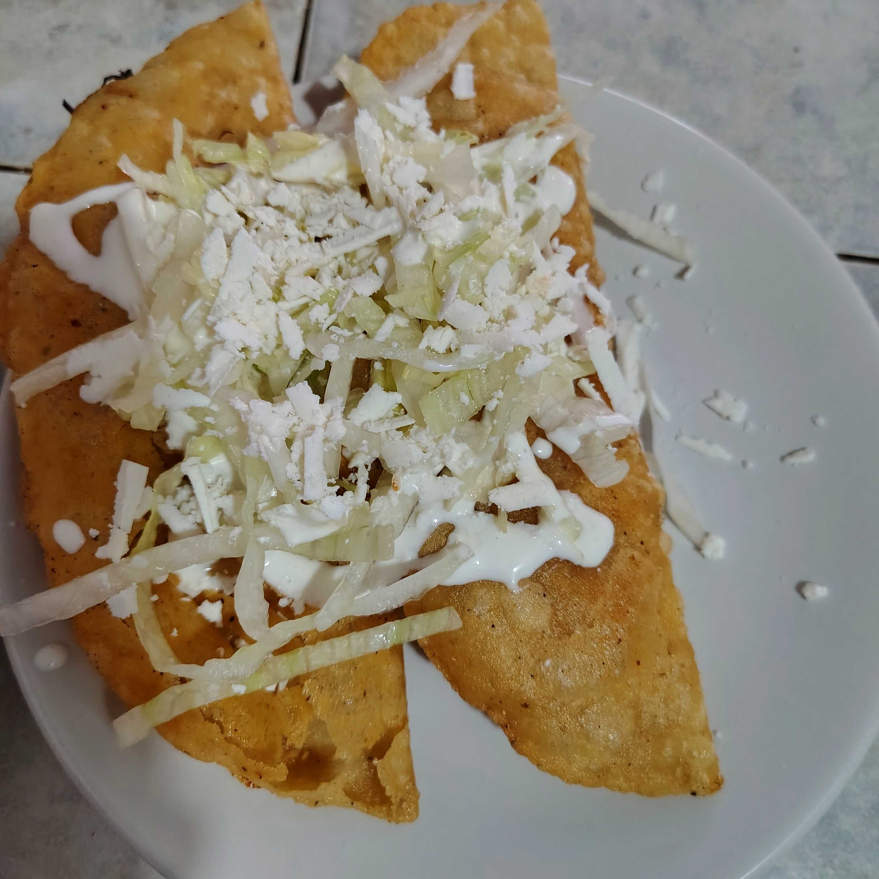 Molotes de masa fritos rellenos a elegir (picadillo, pollo guisado,queso Oaxaca,rajas,papas con chorizo y hawaianos
