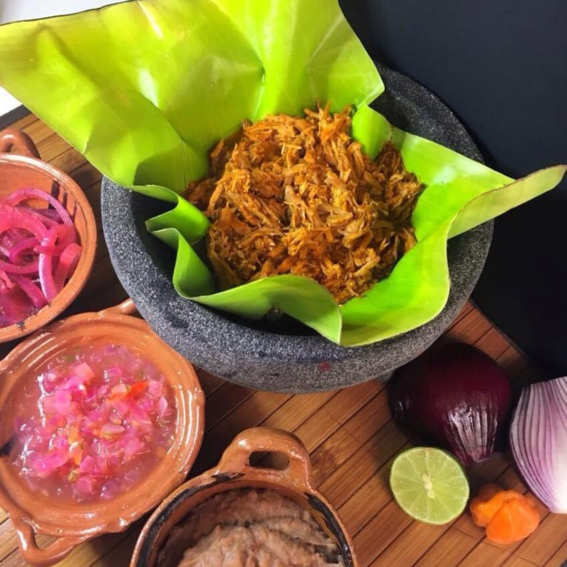 Un Kilo de Cochinita Don Lencho, Acompañada de 500 GRS de Frijolitos Refritos de la Casa, Salsa De chile Habanero con cebolla Morada y Limón, Cebollitas en Curtido y 500 GRS de Tortillas de Maí.z