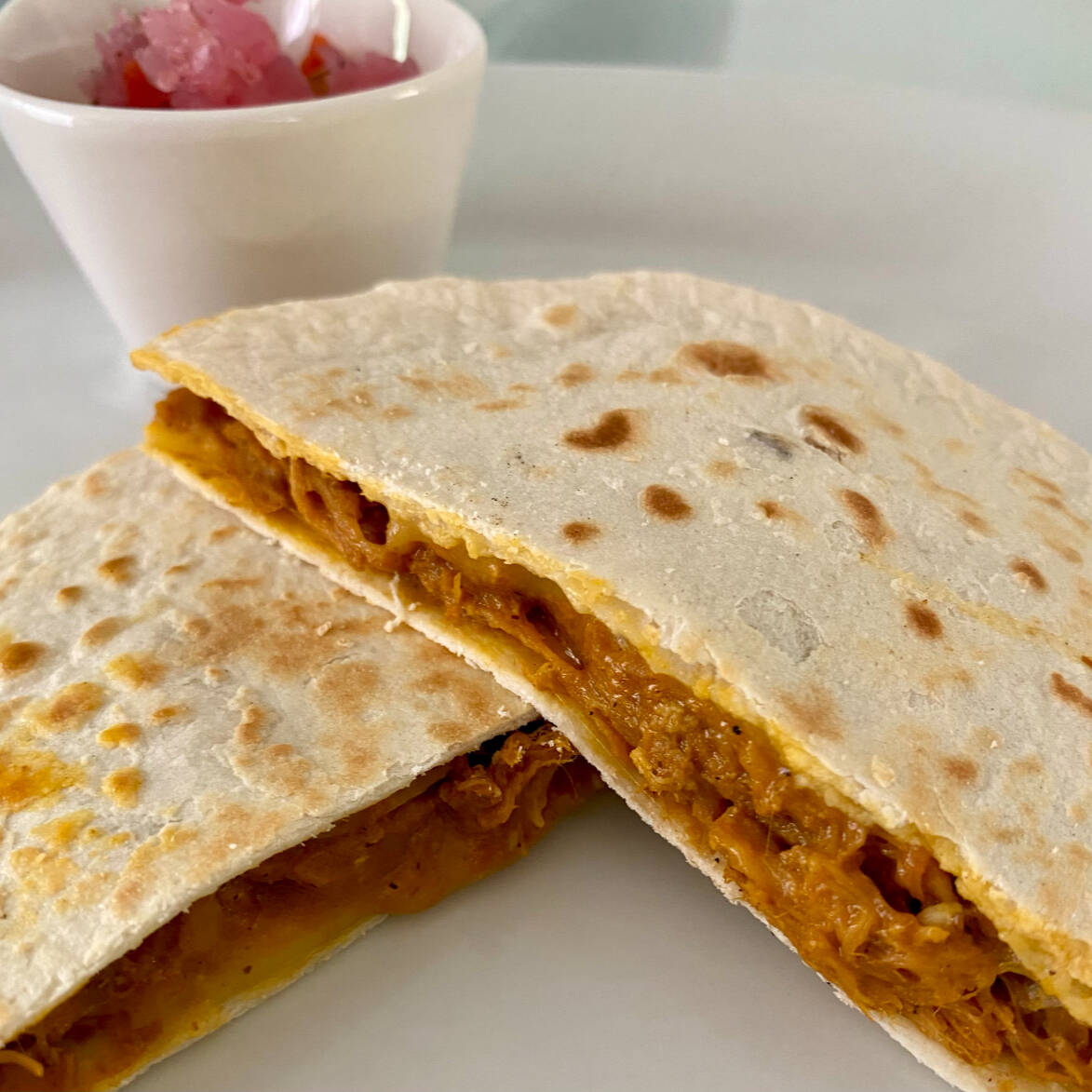 Tortillas de harina rellenas de exquisita cochinita abrazada por queso