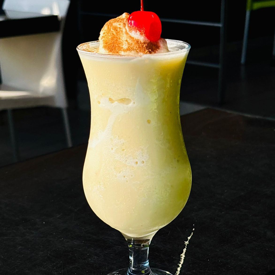 Bebiba preparada de piña colada, contiene alcohol.