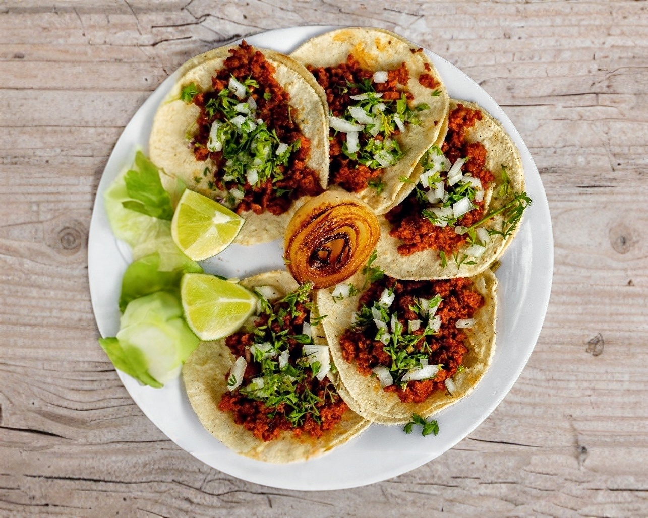 Rica carne de pastor combinada con pimiento morrón, cebolla, tocineta de pavo, queso gratinado, tortillas y salsa.