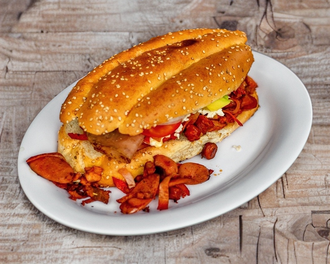Rica combinación de carnes, telera doble acompañada de un Jarrito o Peñafiel de 600ml. .