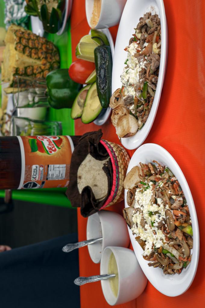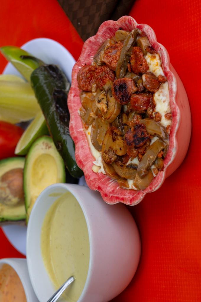 Deliciosa mezcla de bistec de res, chuleta de puerco, pastor, longaniza, champiñones, tocineta de pavo, pimiento morrón, cebolla y queso gratinado, tortillas y salsa.