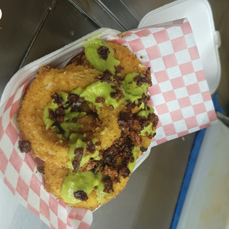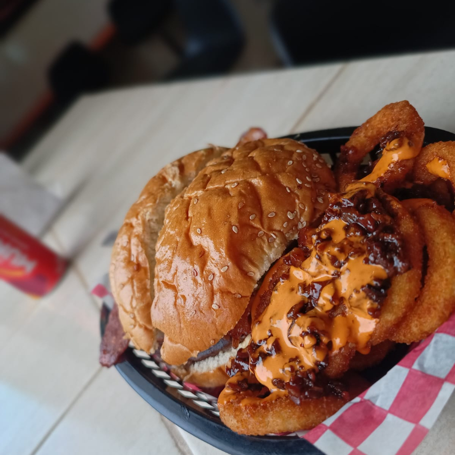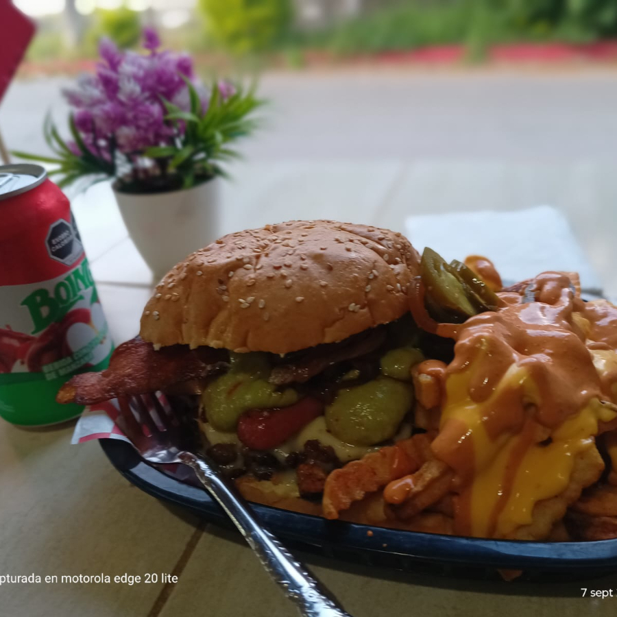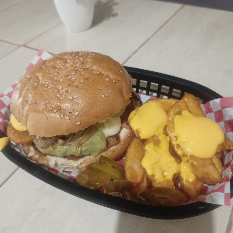 carne, chorizo argentino, aros de cebolla, queso oaxaca, queso amarillo