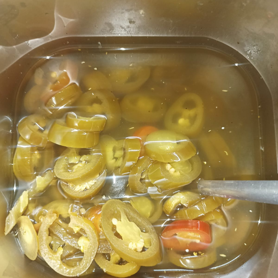 chile güero relleno de una salchicha de pavo con queso envuelto en tocino