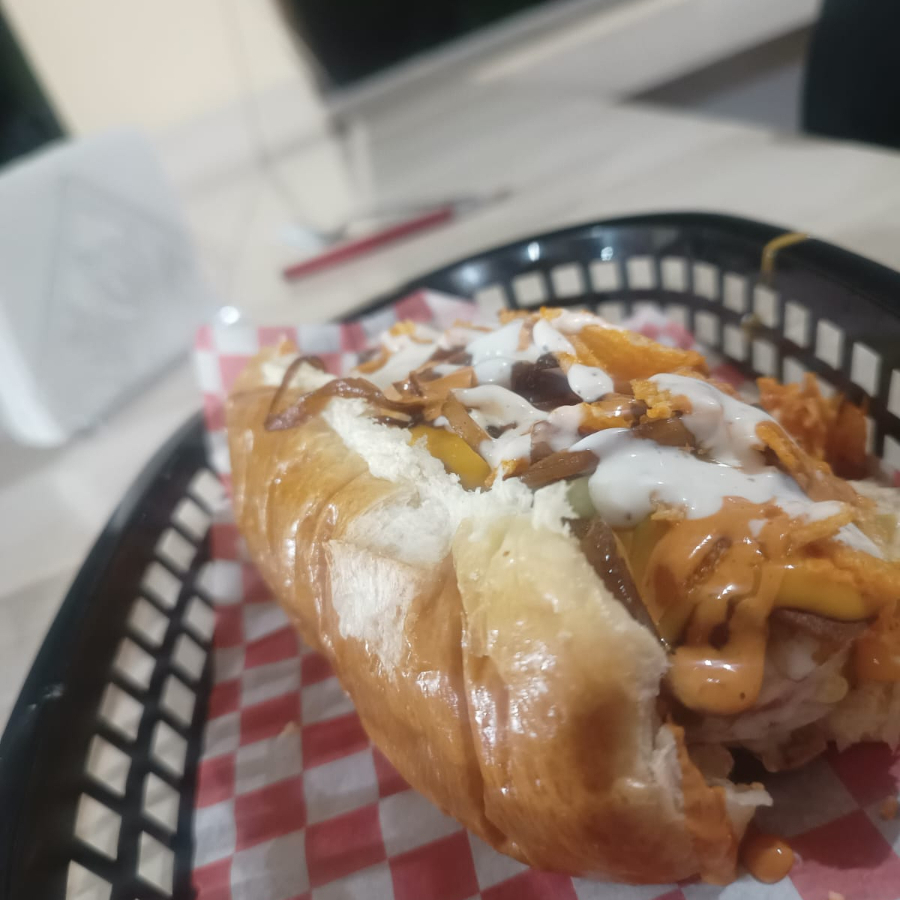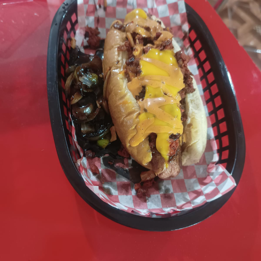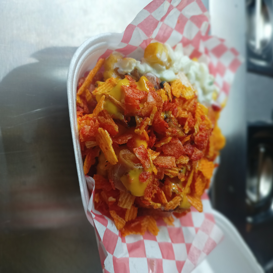 salchicha de pavo envuelta en tocino con queso amarillo, queso philadelphia y queso chihuahua
